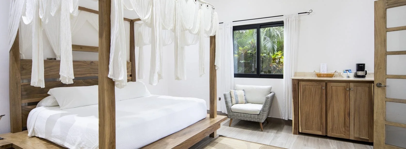 Your full week stay in accommodations of your choosing. All rooms have a/c, wifi, safes, coffee & tea makers, luxurious sheets and canopied beds.