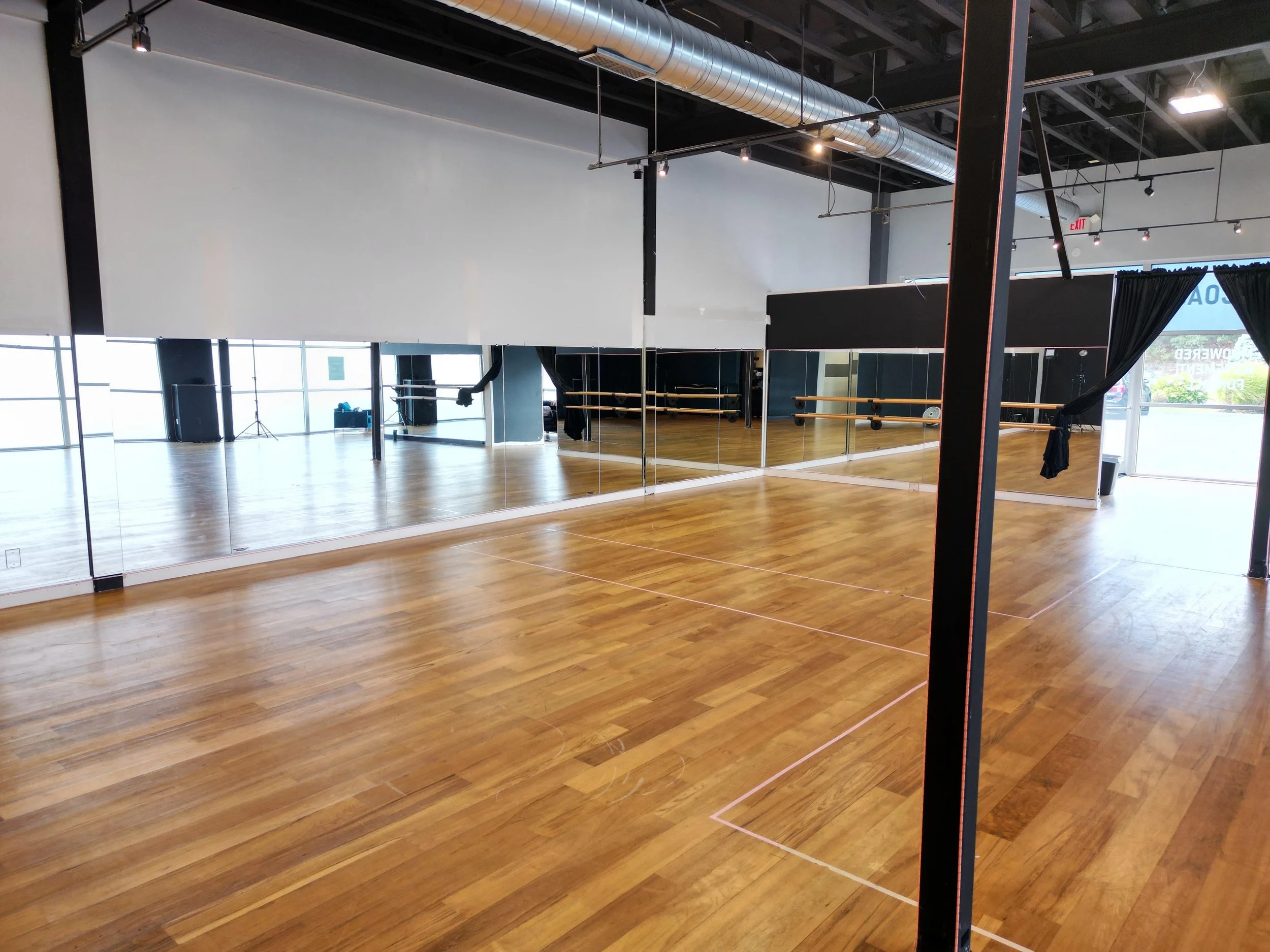 • Full wall of ballet barres